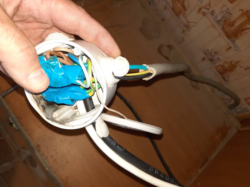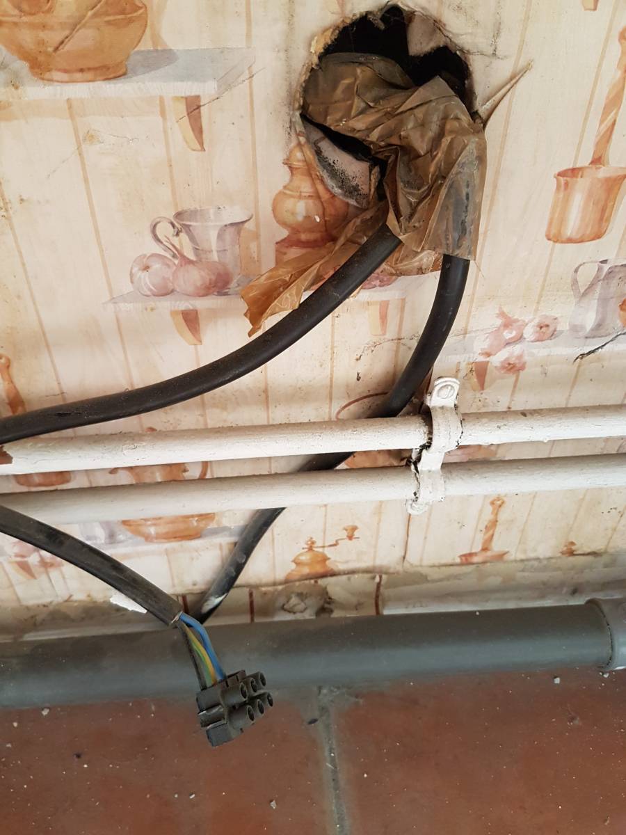 La surprise fut de taille en découvrant ce qui avait été fait auparavant. Des cables électriques étaient fixés ensembles par des gros dominos et du scotch de déménagement, le tout laissé pendant.